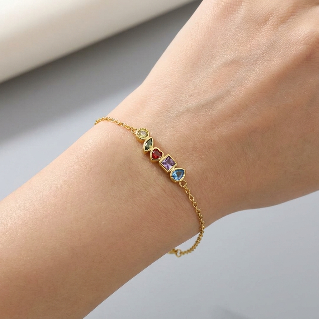 • Bracciale con 5 zirconi multicolor placcato oro