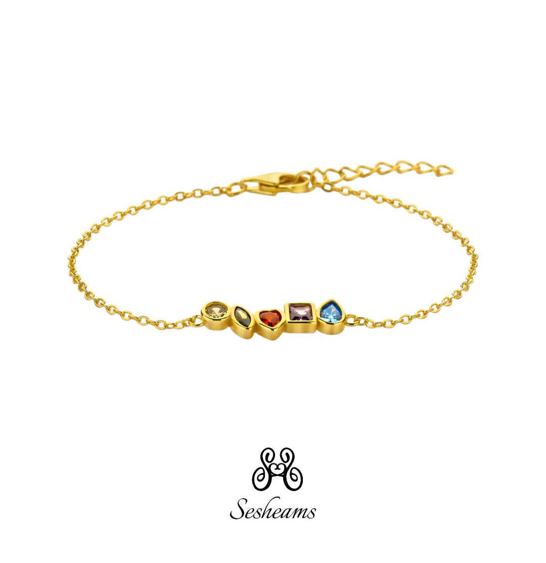 Bracciale con 5 zirconi multicolor placcato oro