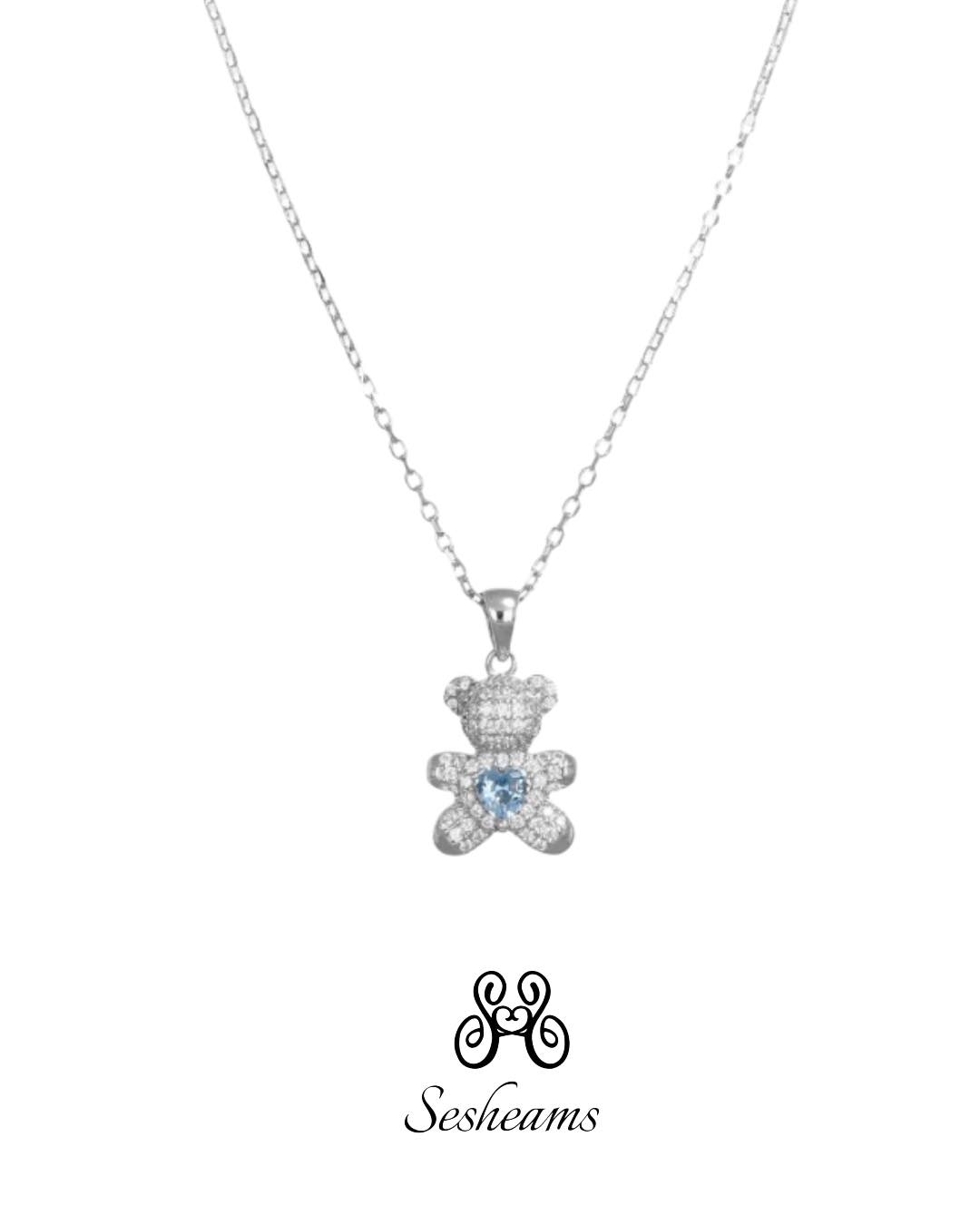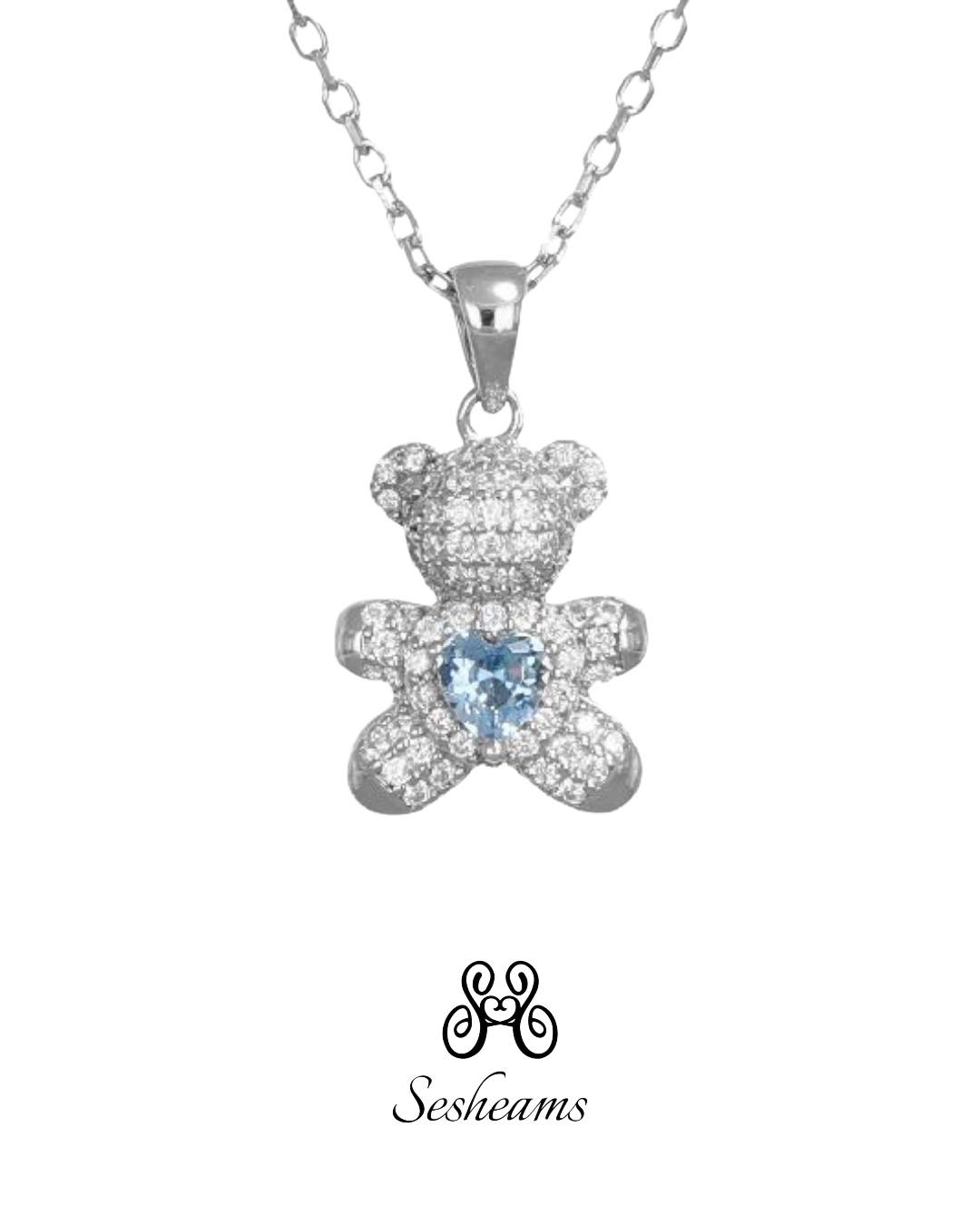 Collana “Orsetto d’amore” realizzata in argento rodiato, un vero e proprio gioiello di design unico e raffinato. Con il ciondolo a forma di orsetto con al centro un cuore di zircone acquamarina che aggiunge un tocco di eleganza e romanticismo. L’orsetto, invece, è adornato da zirconi bianchi che brillano di luce propria. La collana ha una chiusura a moschettone regolabile.