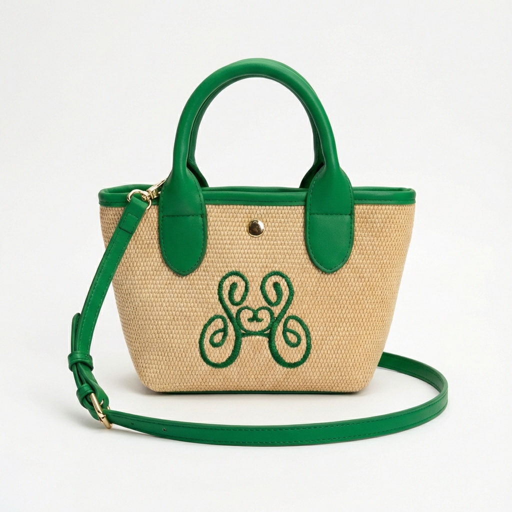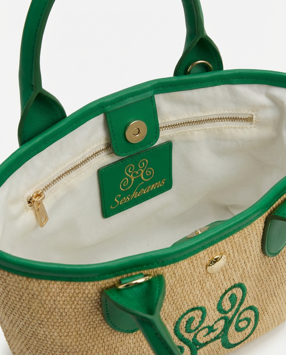 Borsa di paglia a mano e a tracolla e manico di ecopelle