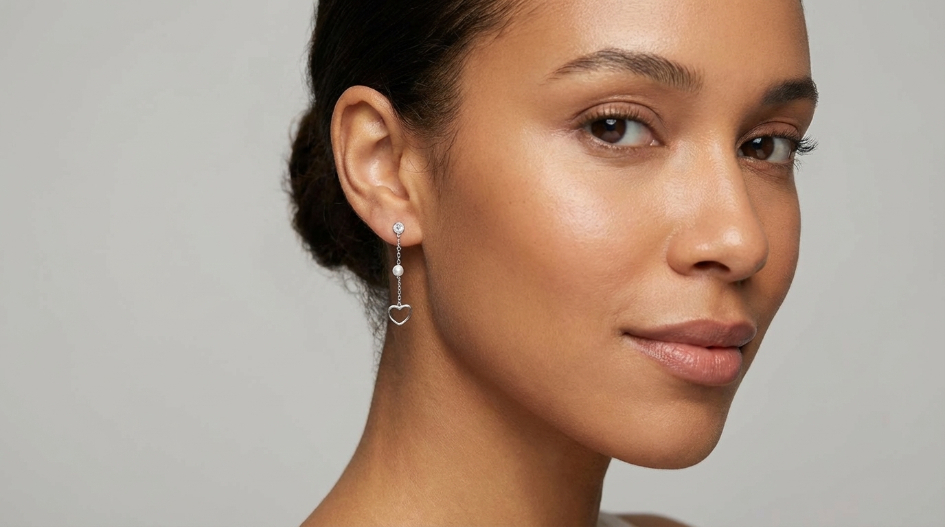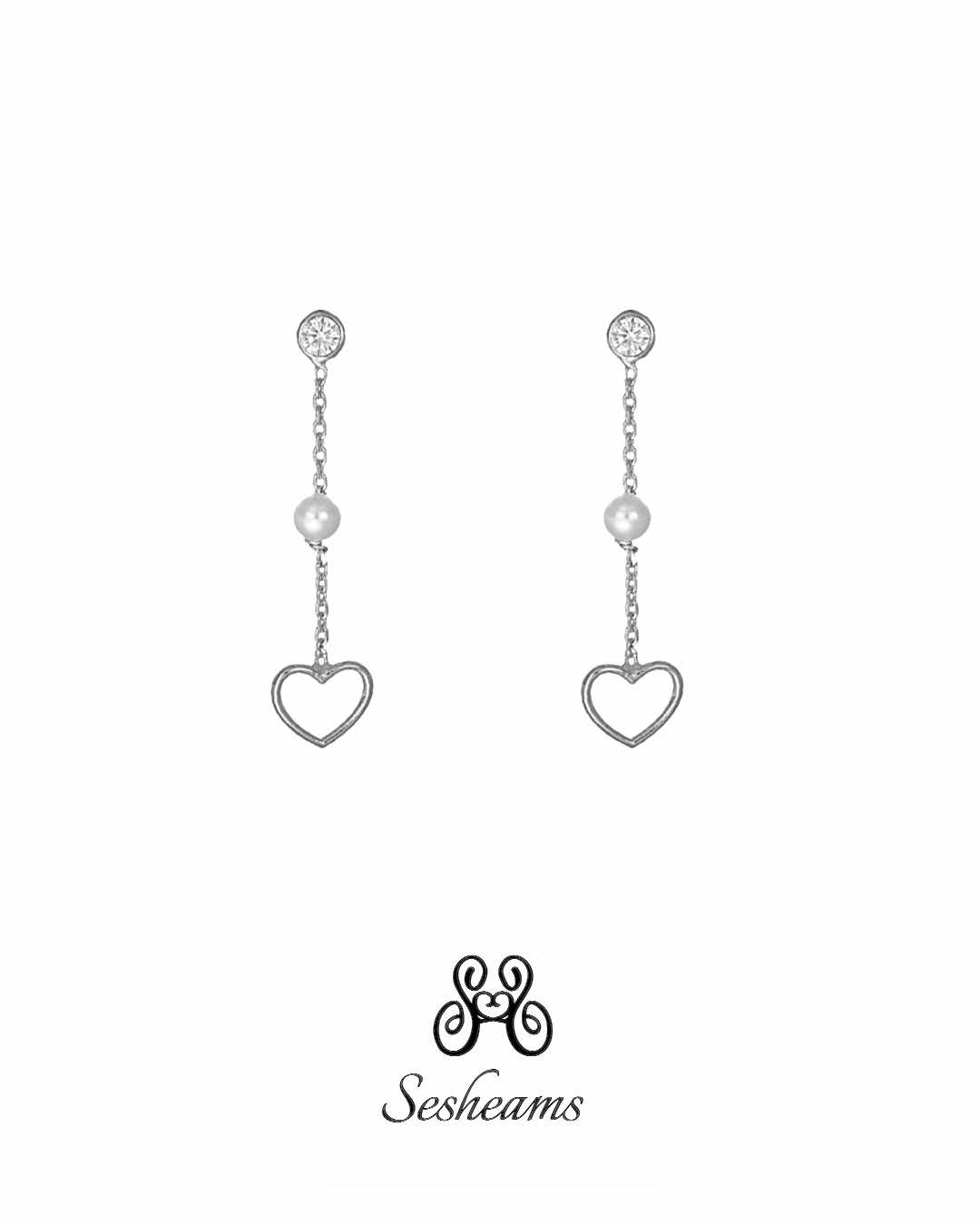 Orecchini scintillanti a catena con zirconi bianchi e cuore in Argento 925