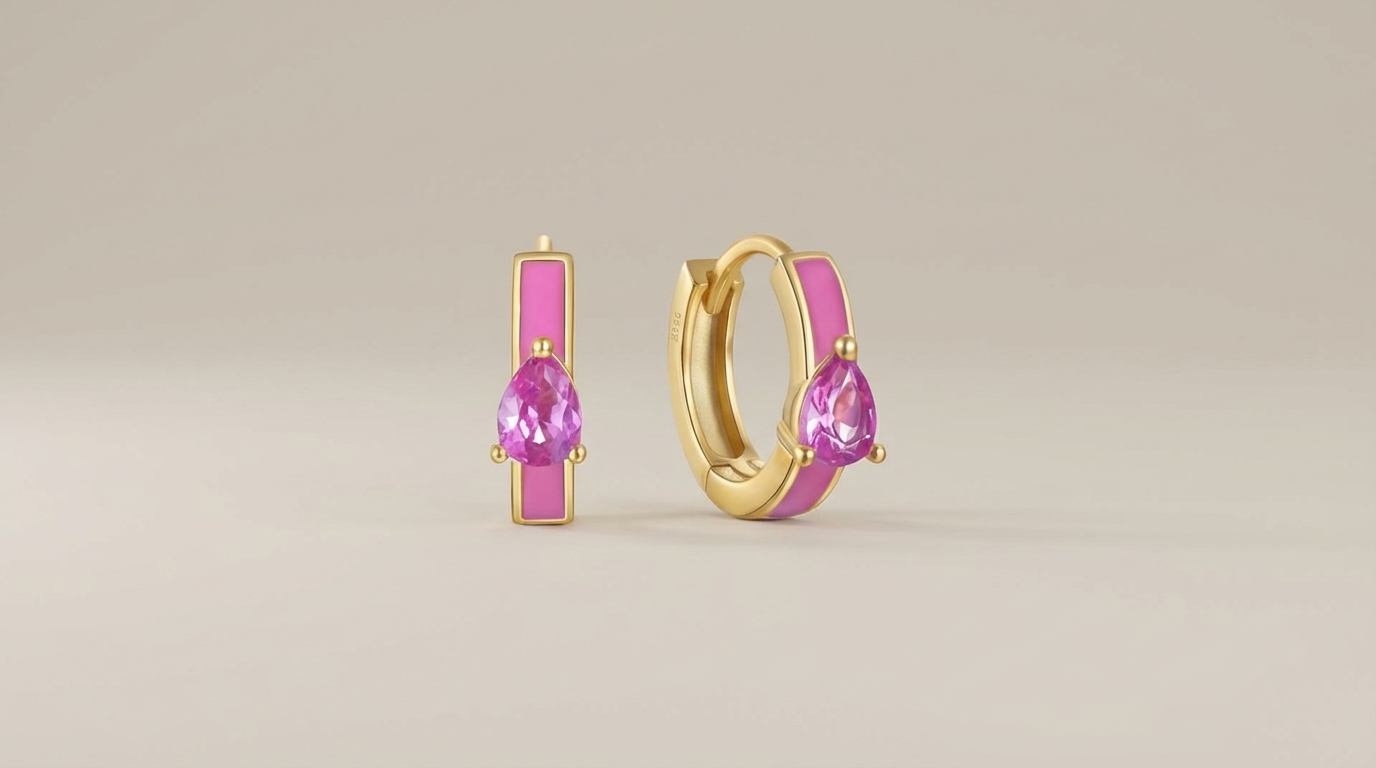 Orecchini a cerchio in argento sterling 925 con cristallo.