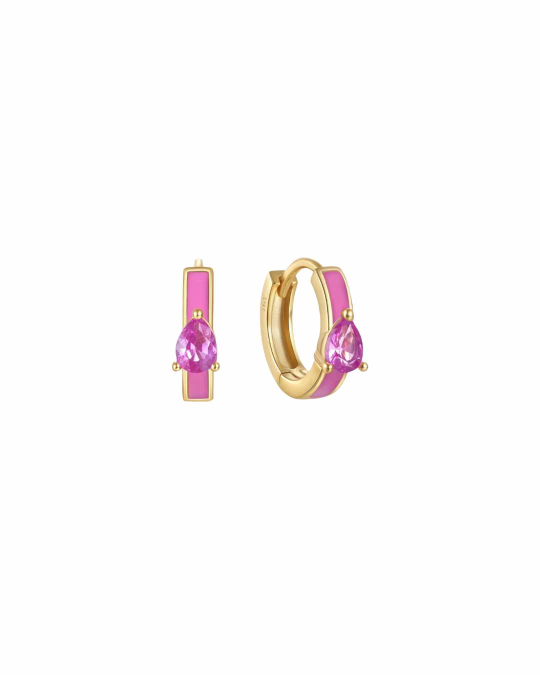 Orecchini a cerchio in argento 925 placcato oro con cristallo.