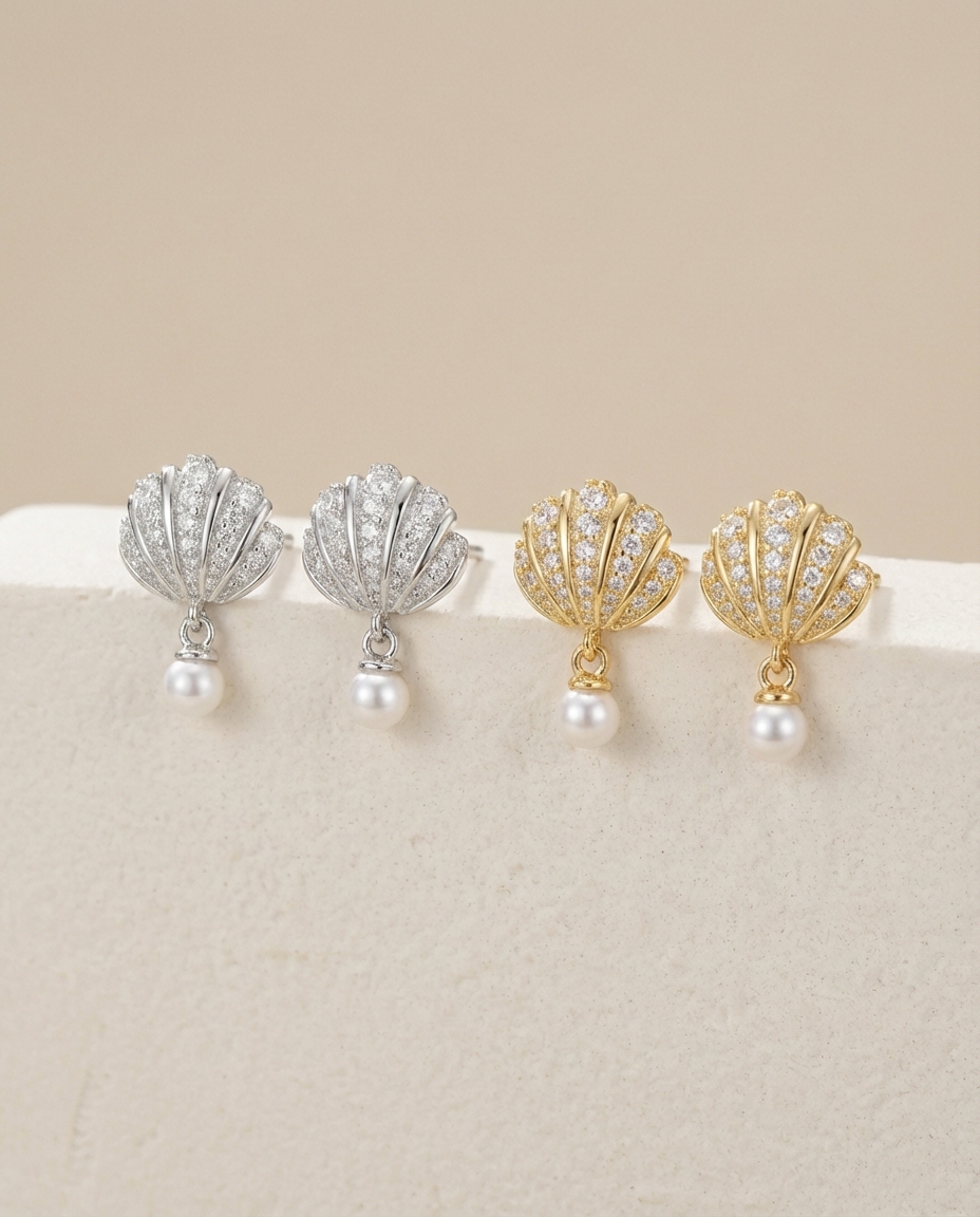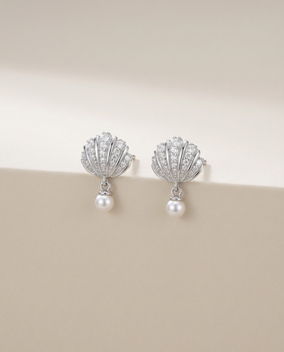 Orecchini Conchiglia con Perla – Argento 925 Silver