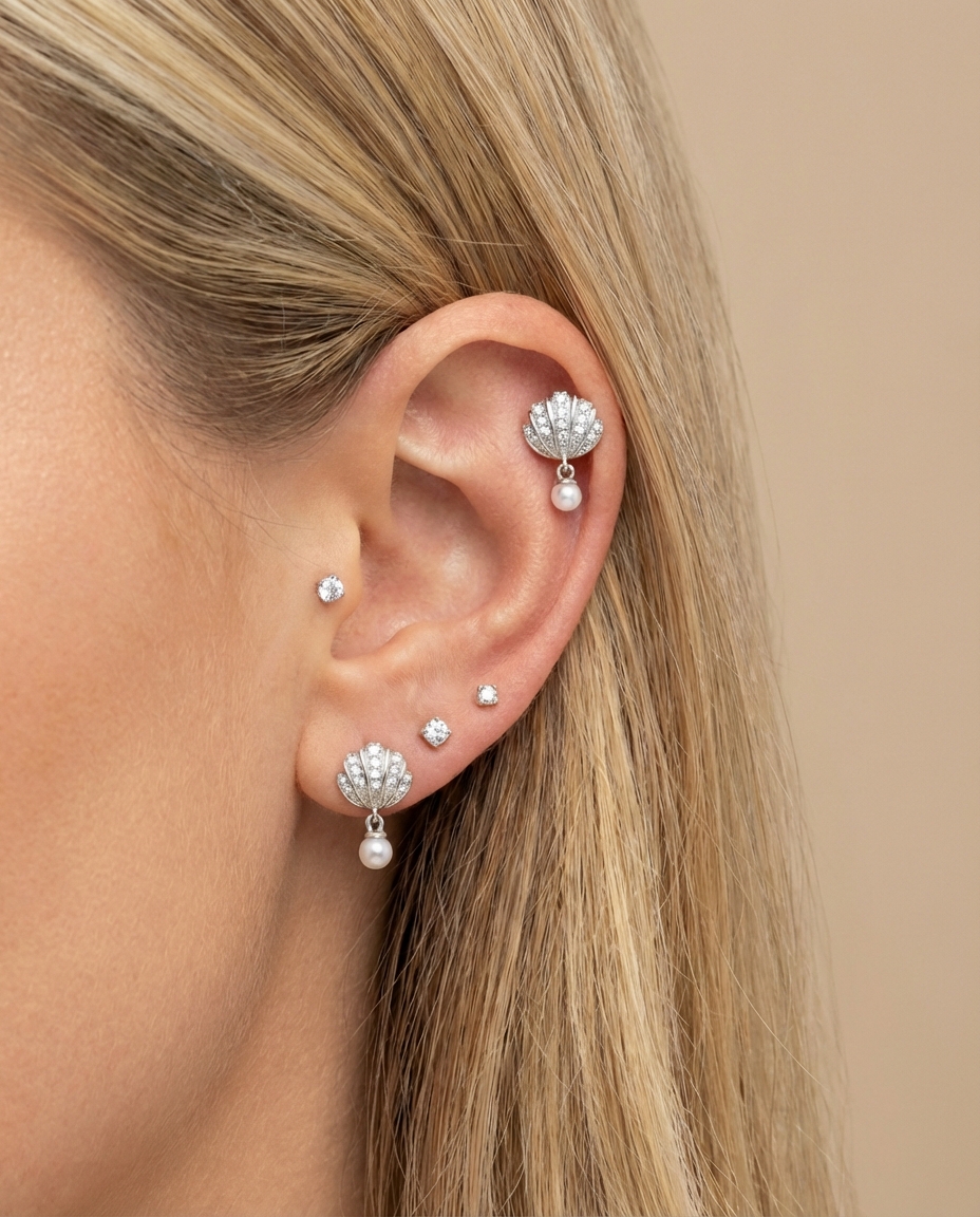 Orecchini raffinati in argento 925, ispirati alla forma iconica della conchiglia, simbolo di nascita, bellezza e protezione.